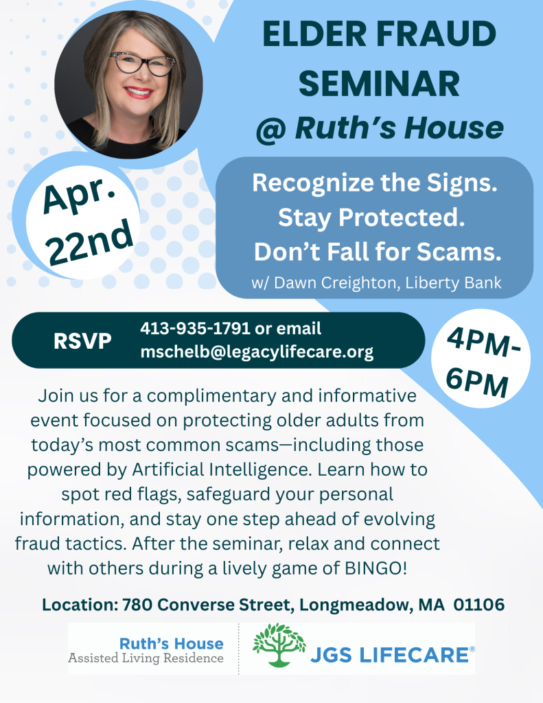 RSVP to 413-935-1791 or email mschelb@legacylifecare.org.