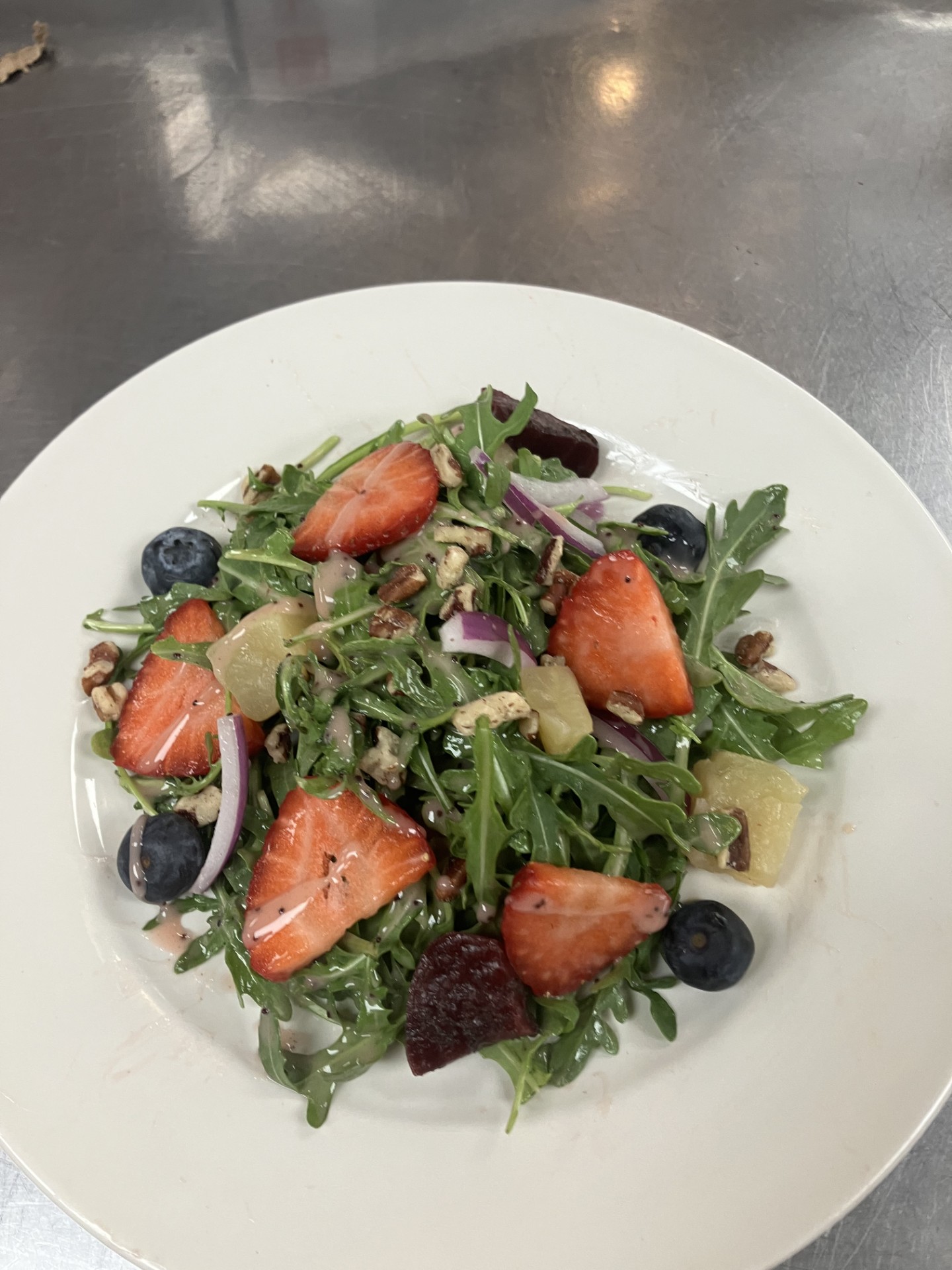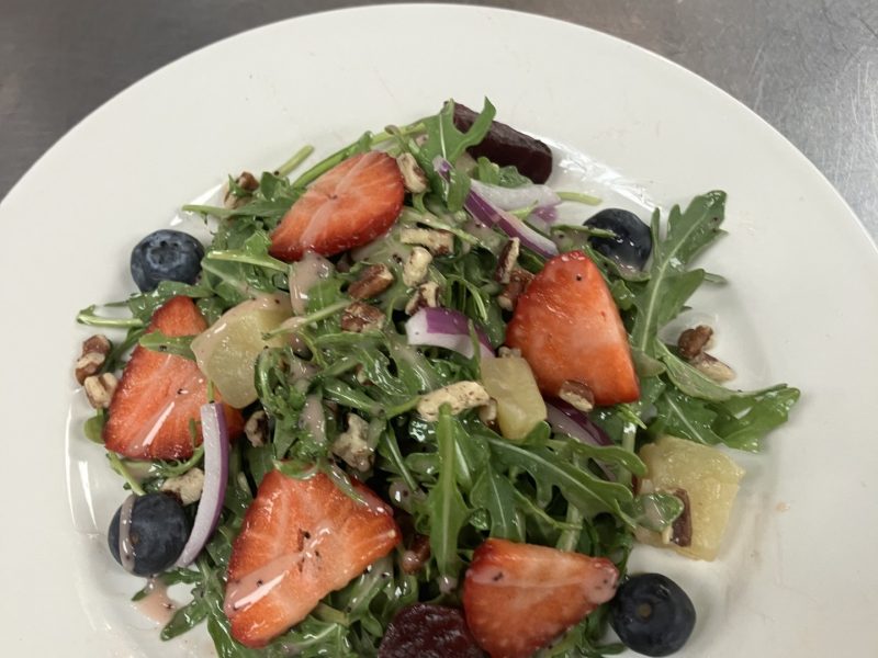 Adam slowly incorporates new dishes on the menu. “Our residents were a little unsure about the baby spinach and strawberry salad at first,” Adam says with a smile. “Now they are big fans!”